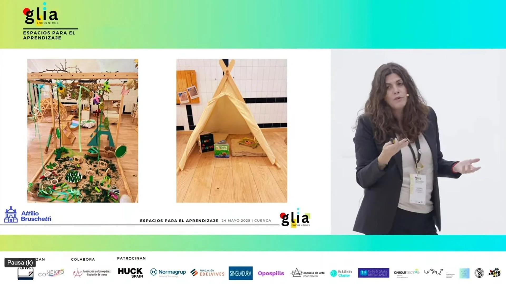 El ejemplo de ambientalización llevado a cabo en el CEIP Attilio Bruschetti, que explicó su directora, Desirée Sánchez, sorprendió al tratarse de un centro público que permite el aprendizaje del alumnado acompañado por el profesorado, a través de distintos espacios tematizados, con materiales al alcance de todos y que permite la interacción entre distintas edades y situaciones de aprendizaje, favoreciendo la horizontalidad y la inclusión.